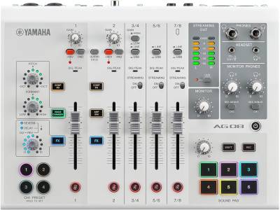 El Yamaha AG08 Black es una consola de mezcla de 8 canales pensada para streaming en vivo, creación de contenido, grabación musical o shows con varios participantes. Ofrece entrada de micrófonos profesionales, gran flexibilidad de conexiones, efectos integrados y herramientas específicas para transmisiones de calidad, ideal si necesitas un equipo más completo que versiones ligeras.