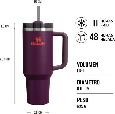Color Plum. Conserva el liquido frío durante 11 Horas, con hielo hasta 48 Horas. De acero inoxidable, sin BPA. Garantía de por vida contra defectos de fabricación.