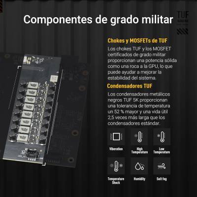 Tarjeta gráfica para gaming (PCIe 5.0, HDMI/DP 2.1, componentes de Grado Militar, Revestimiento PCB, Ventiladores Axial-Tech), contenido: